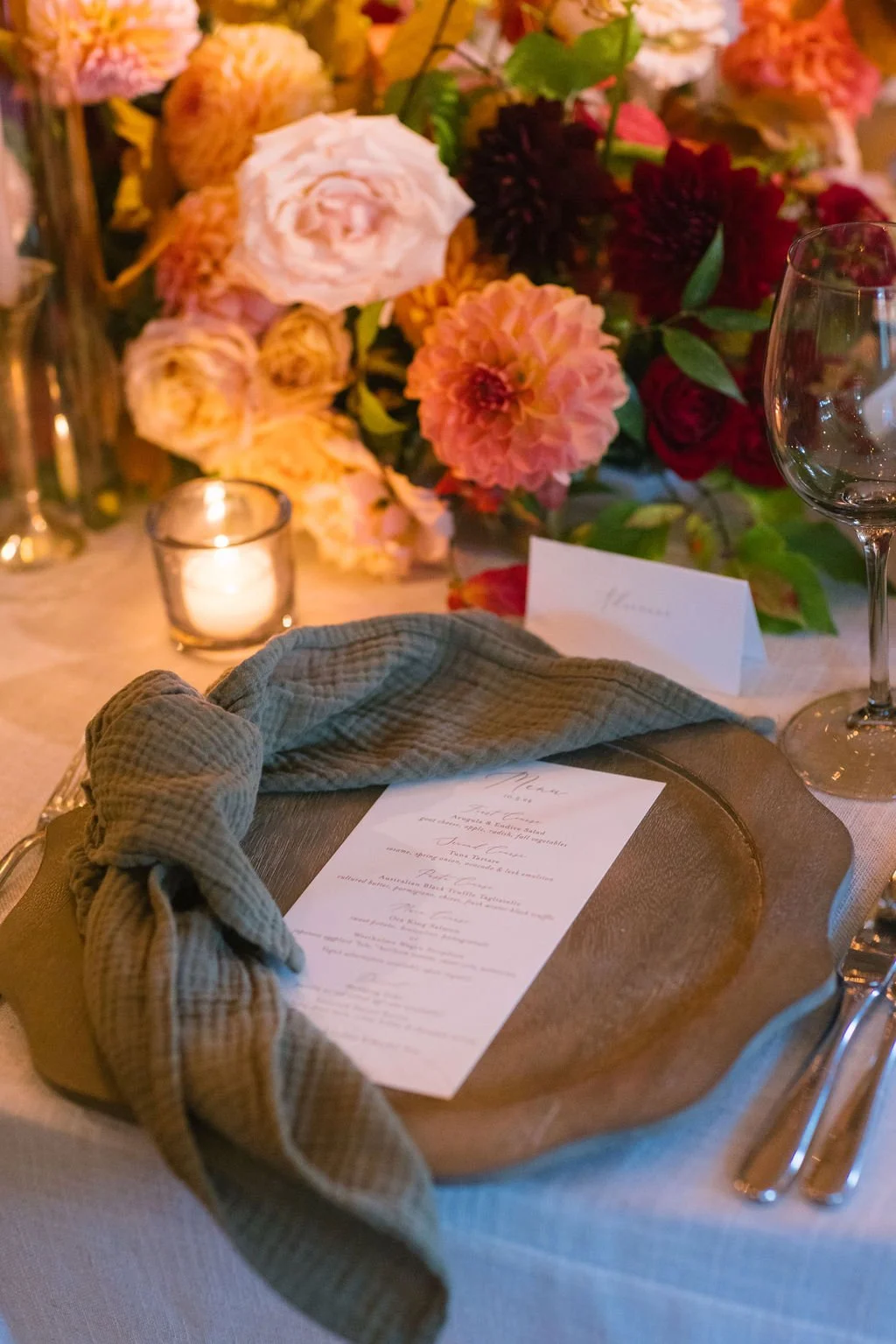 We transformed this classic French bistro in Boston’s Back Bay to create an enchanting and autumnal setting for Alexis & Rich to share their vows and dine in style amongst their 60 closest family members & friends.
